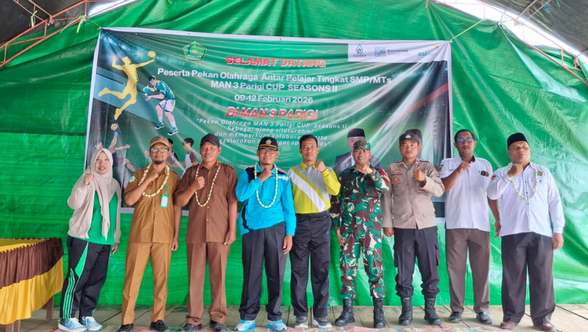 Parigi Moutong — MAN 3 Parigi kembali menggelar kegiatan tahunan Pekan Olahraga Antar Pelajar SMP/MTs Se-Kecamatan Bolano dan Kecamatan Bolano Lambunu yang dikemas dalam ajang MAN 3 Parigi CUP II. Kegiatan ini berlangsung selama empat hari, mulai tanggal 09 hingga 12 Februari 2026, dan diikuti oleh pelajar SMP dan MTs dari berbagai sekolah di dua kecamatan yaitu MTs Negeri 4 Parigi, MTs Wanamukti, MTs Lambunu, SMP Negeri 4 Bolano Lambunu dan SMP Negeri 6 Wanagading.