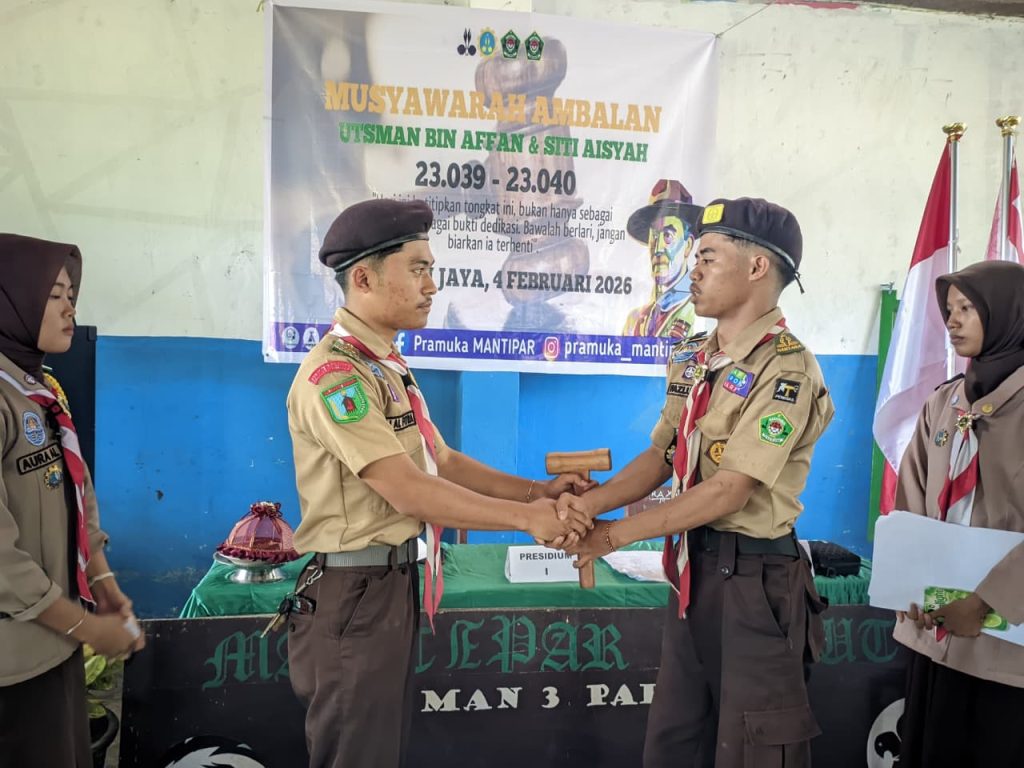 Parigi Moutong – Pangkalan Pramuka MAN 3 Parigi melaksanakan kegiatan Musyawarah Ambalan Ustman bin Affan dan Siti Aisyah pada Rabu, 05 Februari 2026. Kegiatan ini berlangsung dengan khidmat dan penuh semangat kebersamaan di lingkungan MAN 3 Parigi.